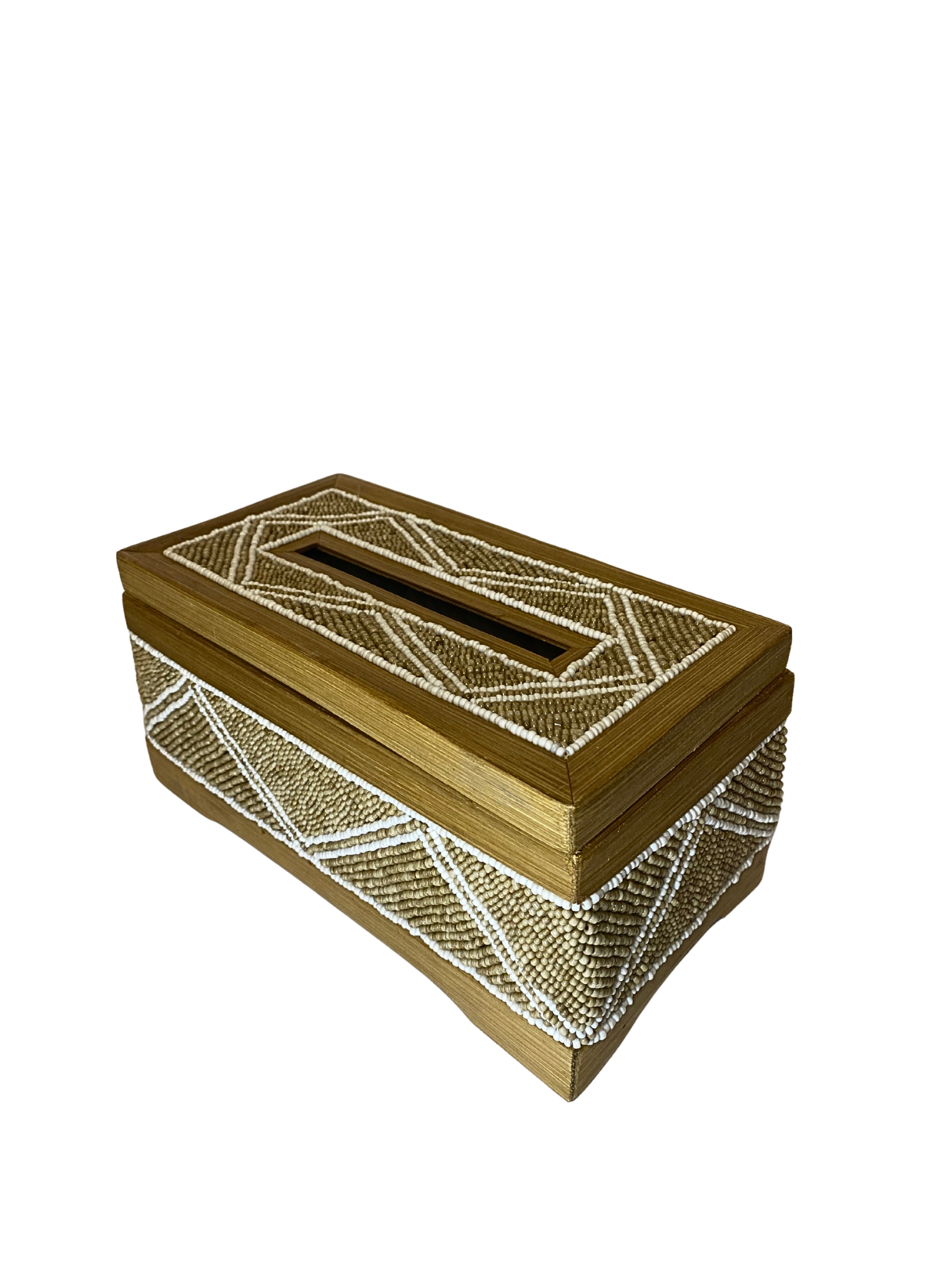 Box tisue beads brown white