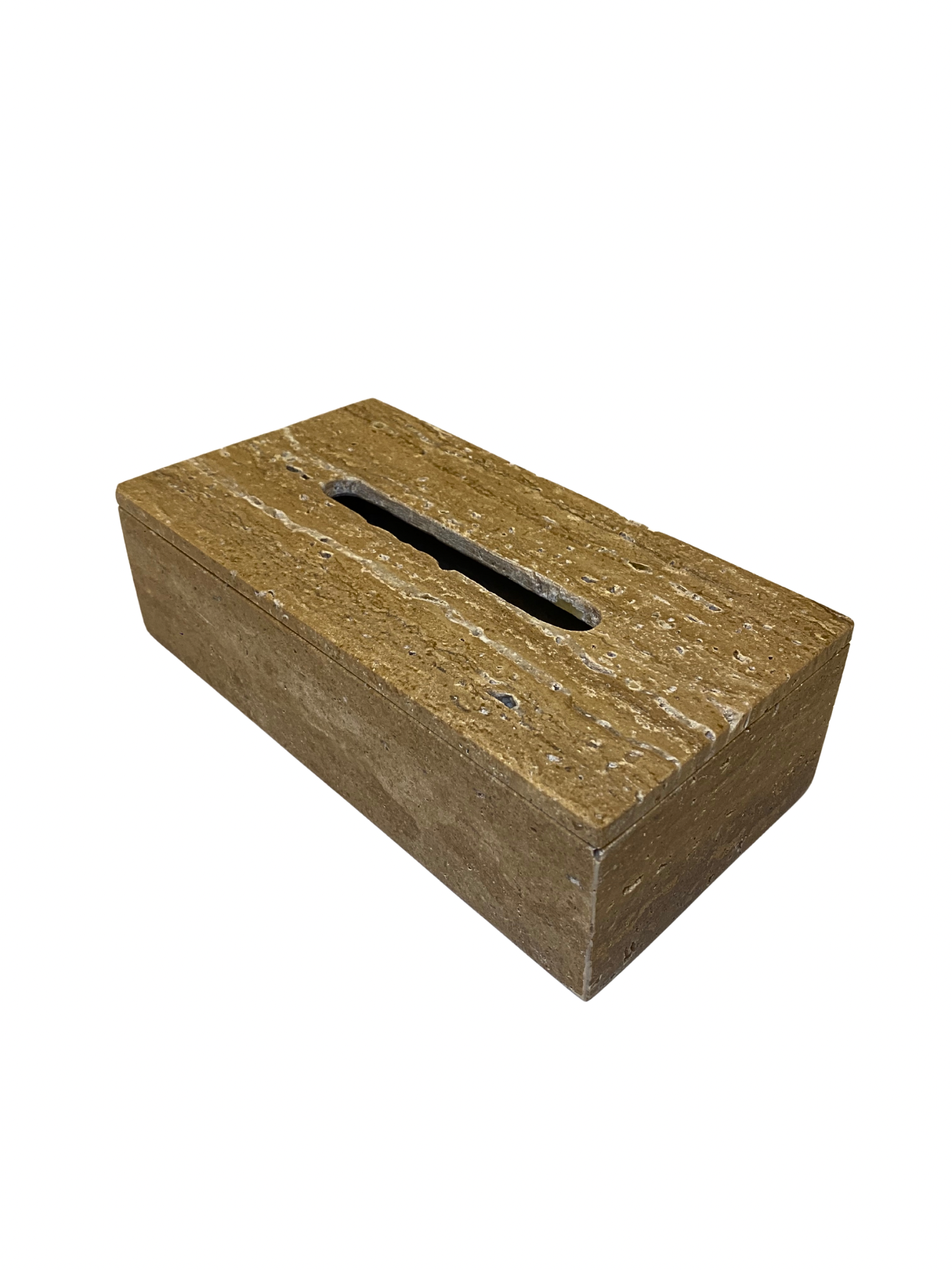 A sophisticated accessory for modern living. Made from solid, rectangular-cut Travertine, this dispenser hides standard tissue boxes beautifully. The stone's neutral color palette and honed finish ensure it complements any interior design style.