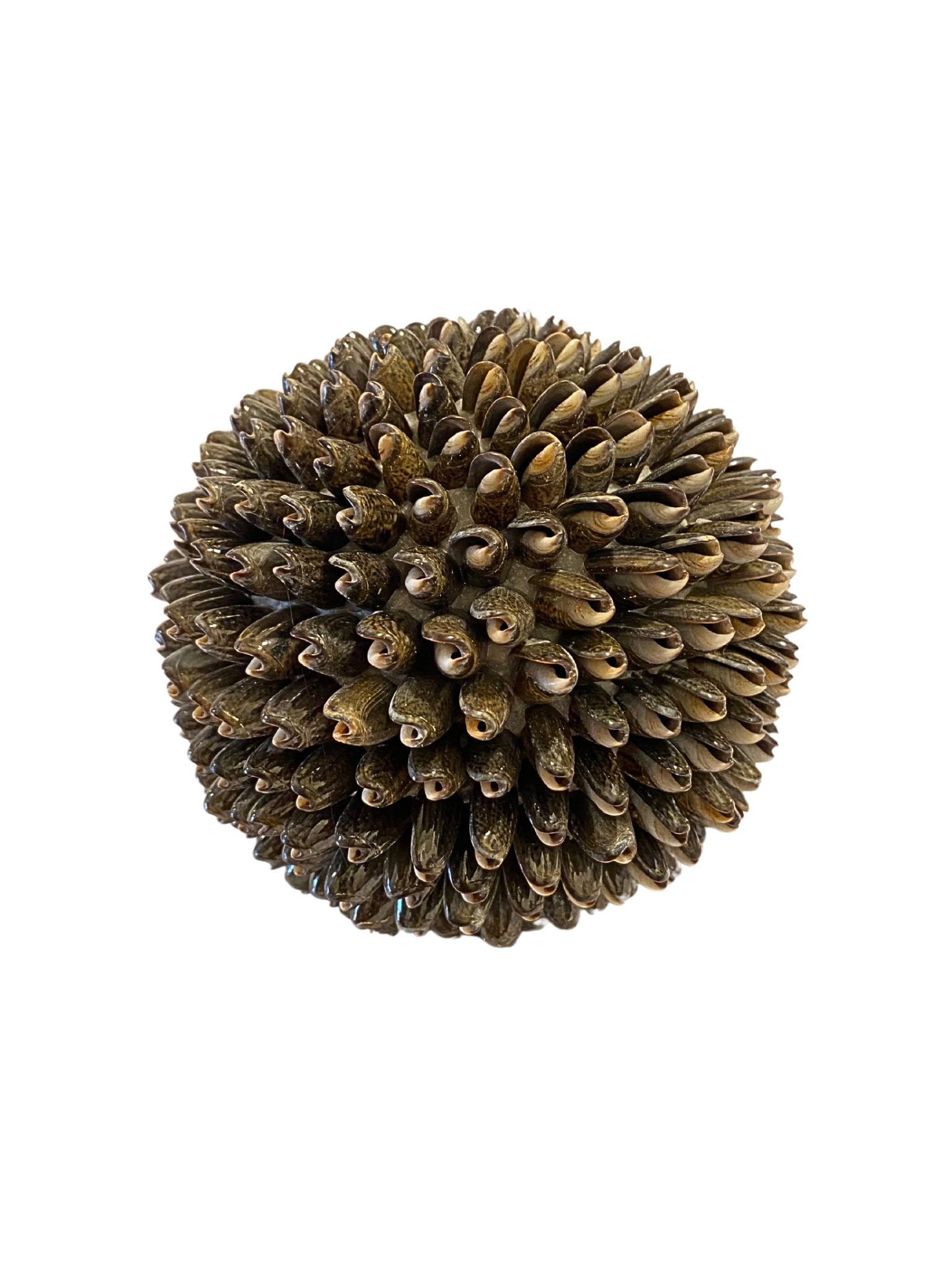 Handcrafted shell sphere from Indonesia. Various sizes and type of sea shells used in making these nautical beach styles ornaments. Colours of the sea shells also vary. We have natural,red pink, black and white sea shells. All real and original sea shells. Use these shell decorations on your kitchen dining table, bathroom or living room Beach balls to decorate your bathroom or kitchen.